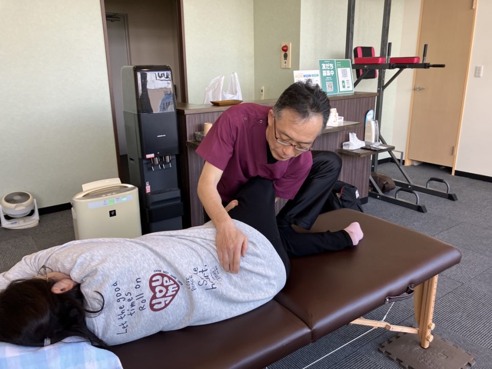 施術者は施術中にも手腕や脚などを触診して判断しております。